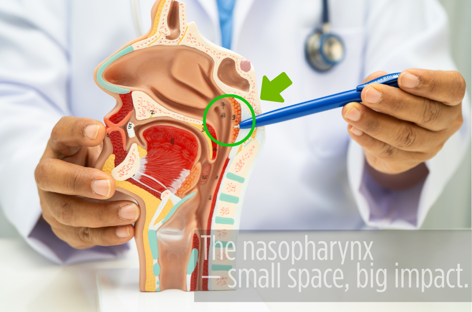 上咽頭というのは、鼻の奥と口の奥の間。のどちんこさんの斜め上。