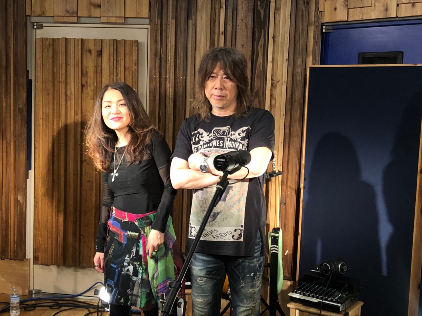 レコーディングスタジオにカメラと撮影スタッフ。